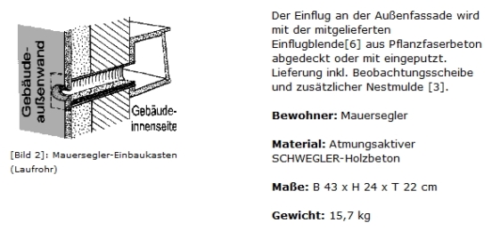 wird auf der Raumseite der Außenwand angebracht. An der Fassade ist nur das Einflugloch zu sehen. |