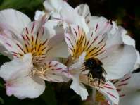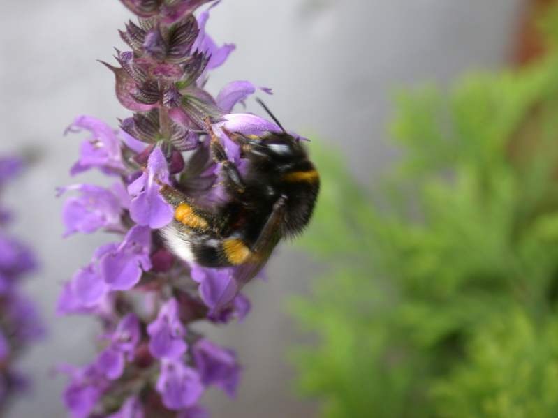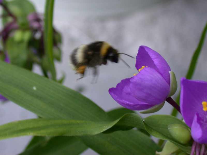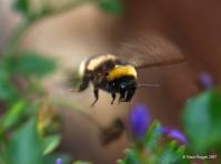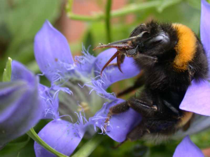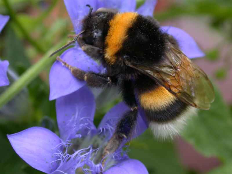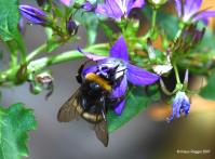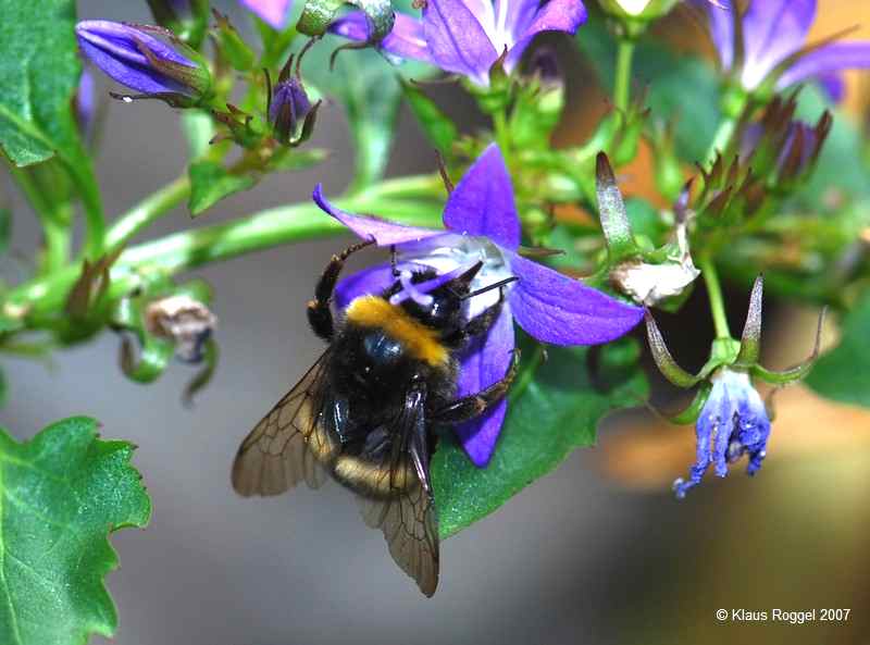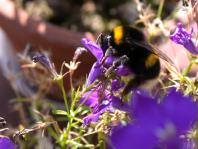Erdhummel im Flug Erdhummel an Campanulablüte |
