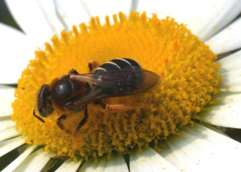 Furchenbiene [Lasioglossum calceatum] auf Margarittenblüte |