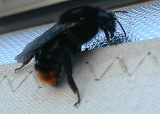 | Rechts: Eine Kuckuckshummel am Sonnenschutzrollo | ||