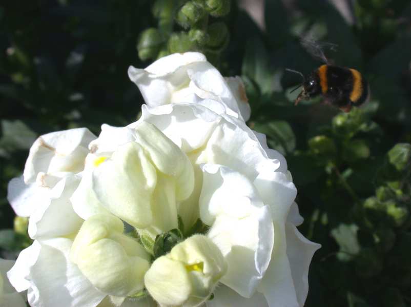 Die weißblühenden Löwenmäulchen werden besonders gern von Erdhummeln besucht. |