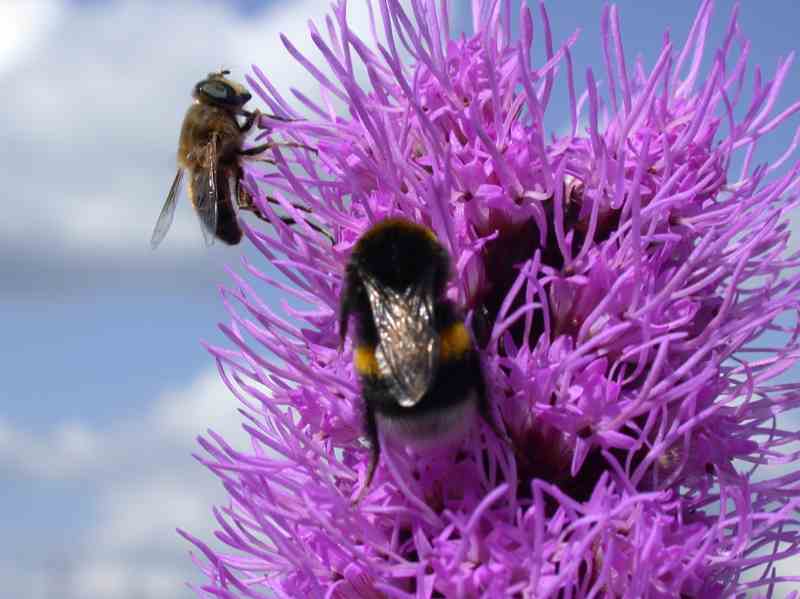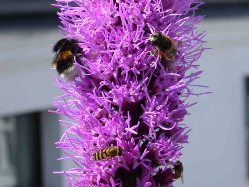 Diese violette Prachtscharte [Liatris spicata] hat sich als bedeutender Insektenanziehungspunkt erwiesen. |