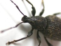 Er zählt optisch als auch namentlich sofort erkennbar zu den Rüsselkäfern (Curculionidae), die im europäischen Raum mit über 5.000 Arten vertreten sind. Er ist etwa 10-12 mm lang, länglich-oval, schwarz gefärbt und dämmerungs- bzw. nachtaktiv. Tagsüber versteckt sich der Käfer u.a. unter Laub, in Steinspalten, hinter Rankgerüsten. Die Käfer sind nicht flugfähig, somit nur "per pedes" unterwegs. Die Eier der ausschließlich weiblichen Käfer sind dunkel gefärbt und nur Bruchteile eines Millimeters groß. Die schlüpfenden Larven (2 mm) sind weiß gefärbt, mit einer braunen Kopfkapsel versehen, fußlos und bauchwärts gekrümmt; im Laufe ihrer Entwicklung werden sie bis zu 12 mm lang. Mehr über diesen Schädling: ... |