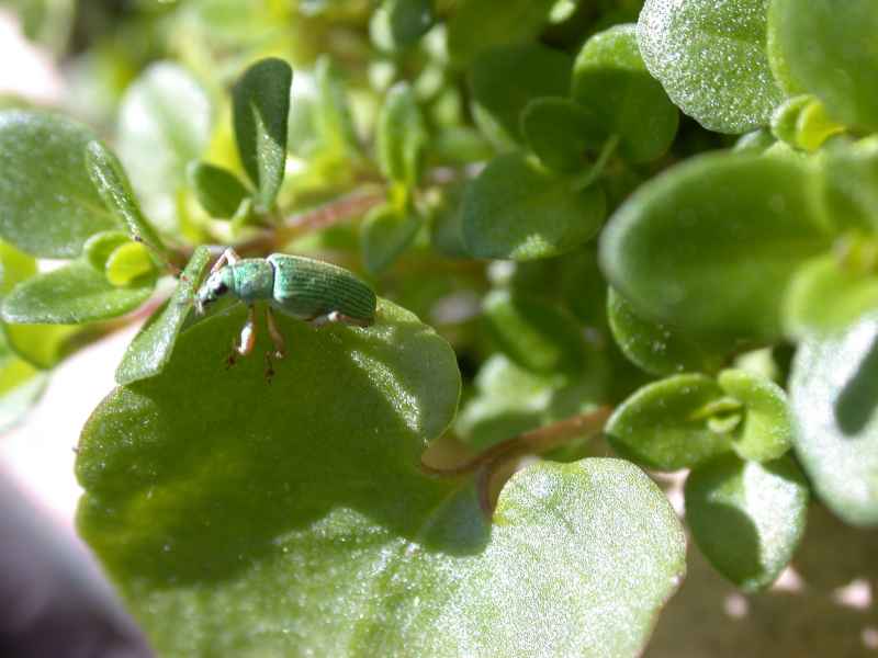 | * Der gefurchte Dickmaulrüssler schädigt die Blätter, während die weißlichen Larven die Wurzeln anfressen. | |