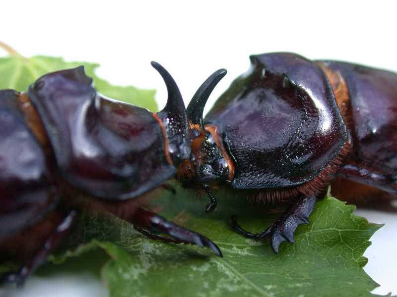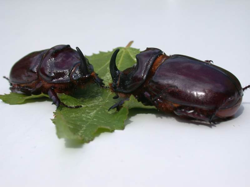 | Nashornkäfer [Oryctes nasicornis] | 2 Männchen, Größe: 38 - 40 mm | Fundort: B-Wilmerdorf, 19.05.05 |
