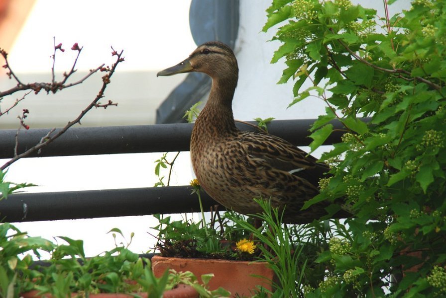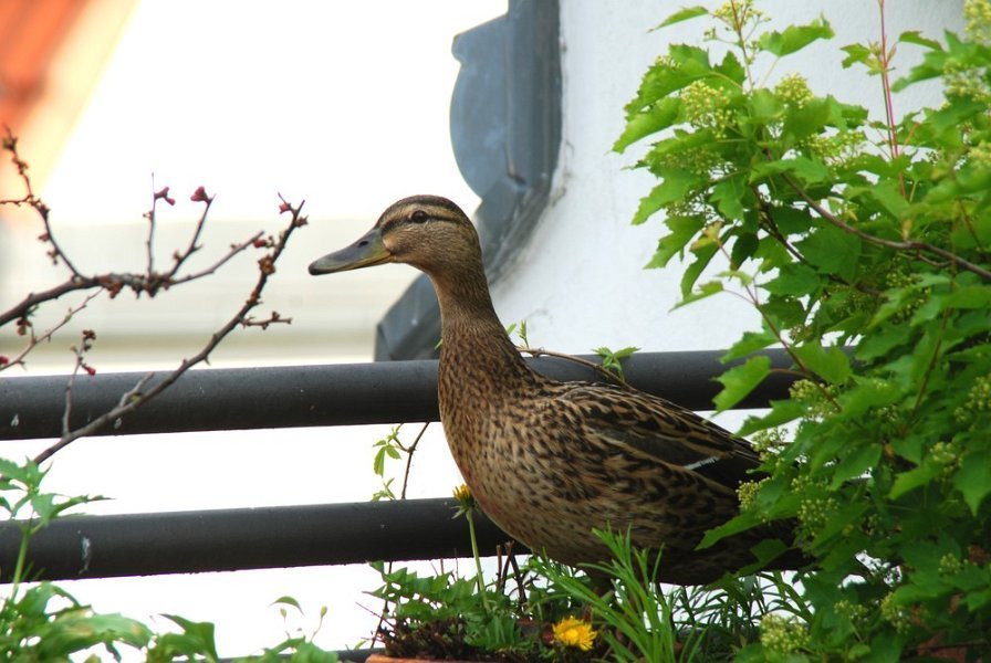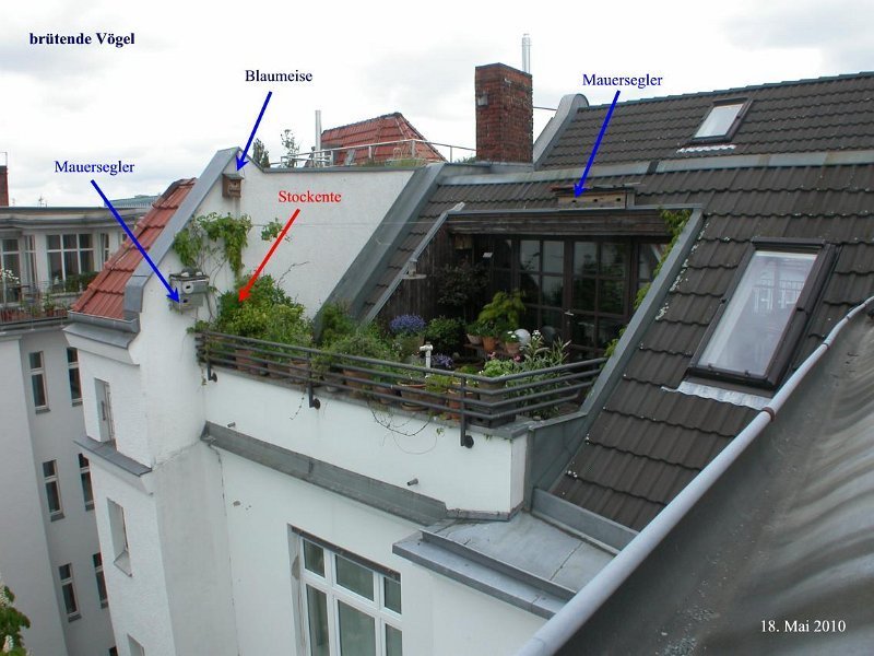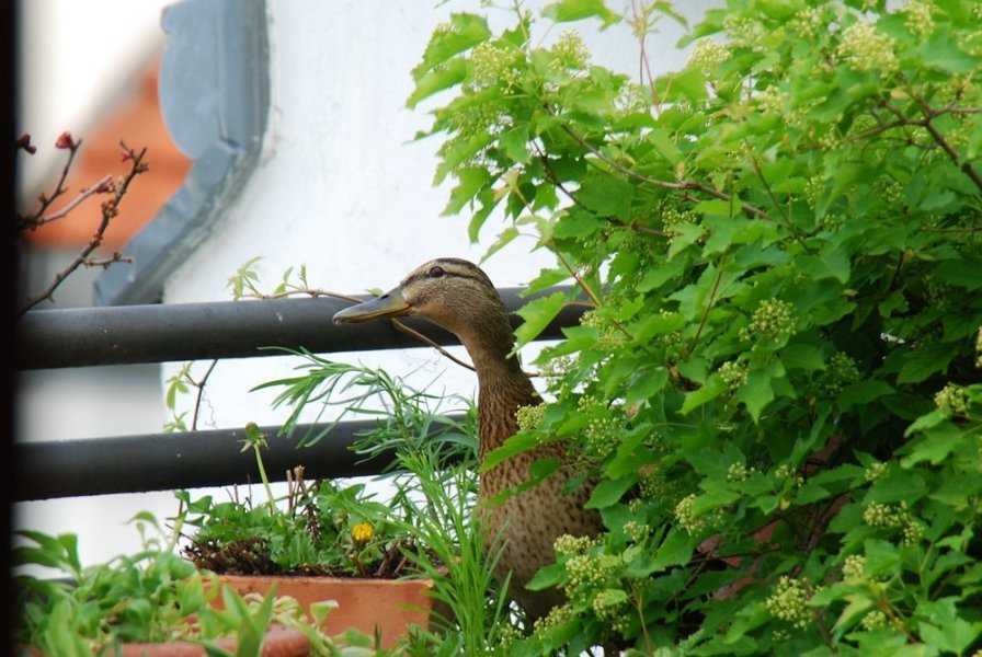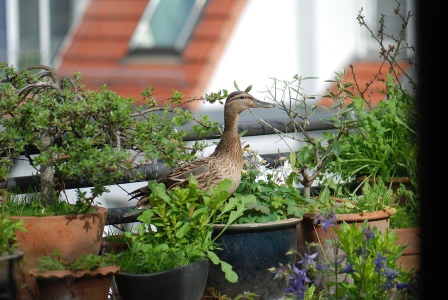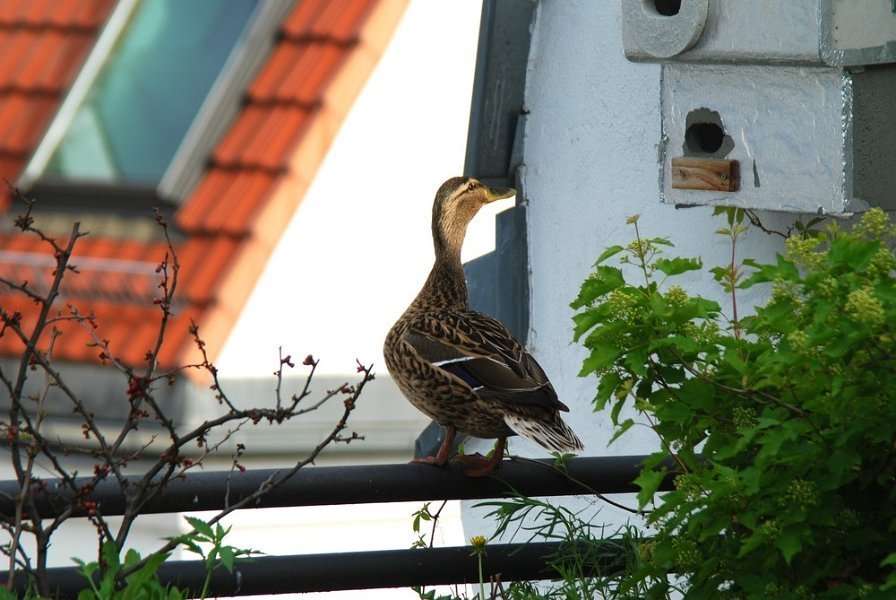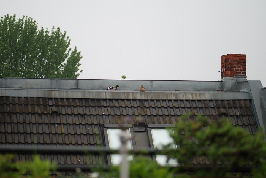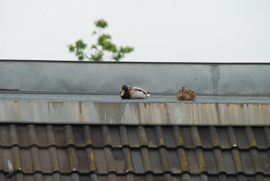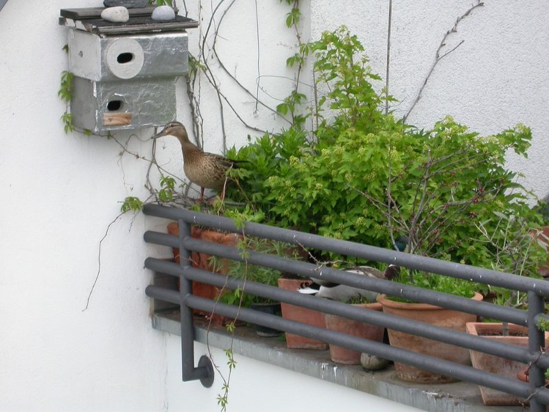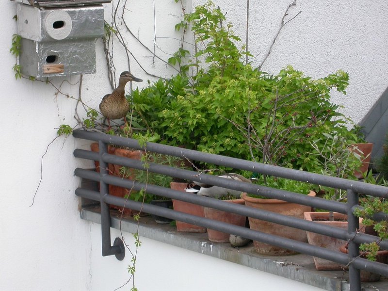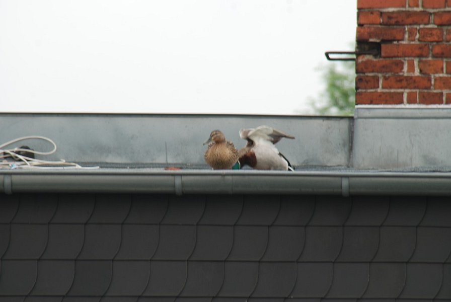 Ein Stockentenpaar, wir nennen sie Konstantin und Konstanze, sondieren den Brutplatz auf der Dachterrasse am 30. April 2010.
