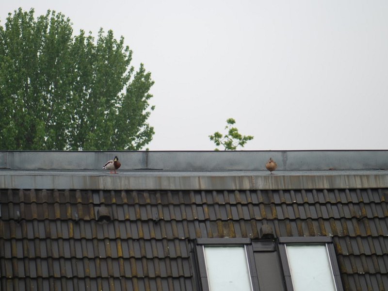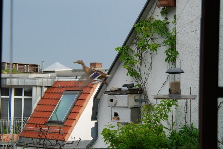 Am Morgen des 20. Mai sitzen beide Enten auf dem gegenüberliegenden Nachbardach ohne das Nest aufzusuchen. Nach einer Weile, als sich ein tieffliegender Rettungshubschrauber mit ohrenbetäubendem Lärm nähert, fliegen sie davon und liessen sich von da an nicht mehr blicken. Die Eier haben sie zurückgelassen.