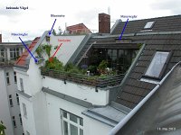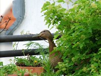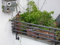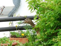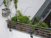 Erst am 18. Mai kehren die beiden zurück. Sie baut in einem Pflanzkübel ein Nest und legt 2 Eier.