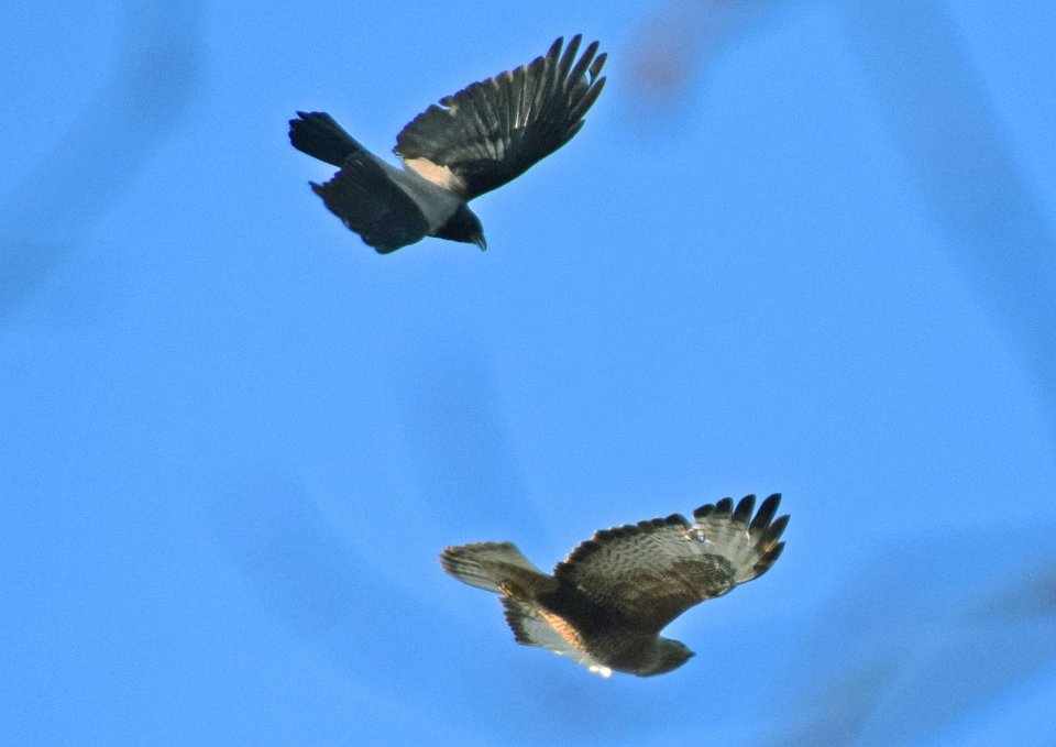Vogelbeobachtungen an einem sonnigen Wintertag - 14.01.2016 - im Park: Gartenbaumläufer, Bussard und Nebelkrähe, Habicht, Buntspecht und Kleiber
