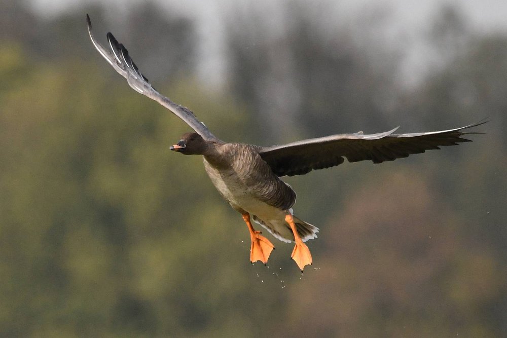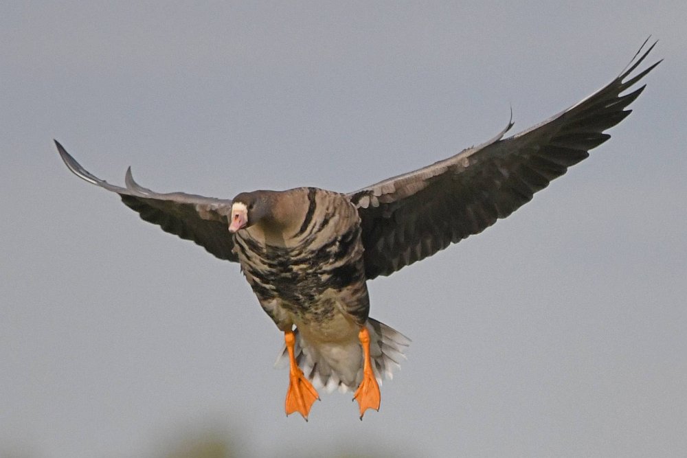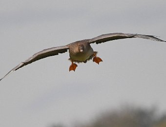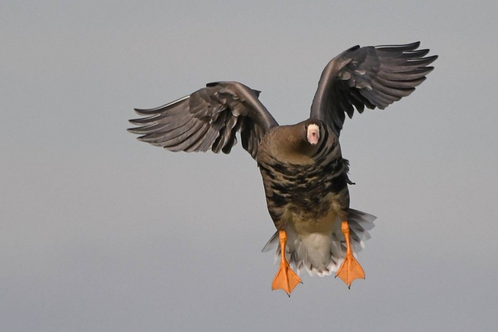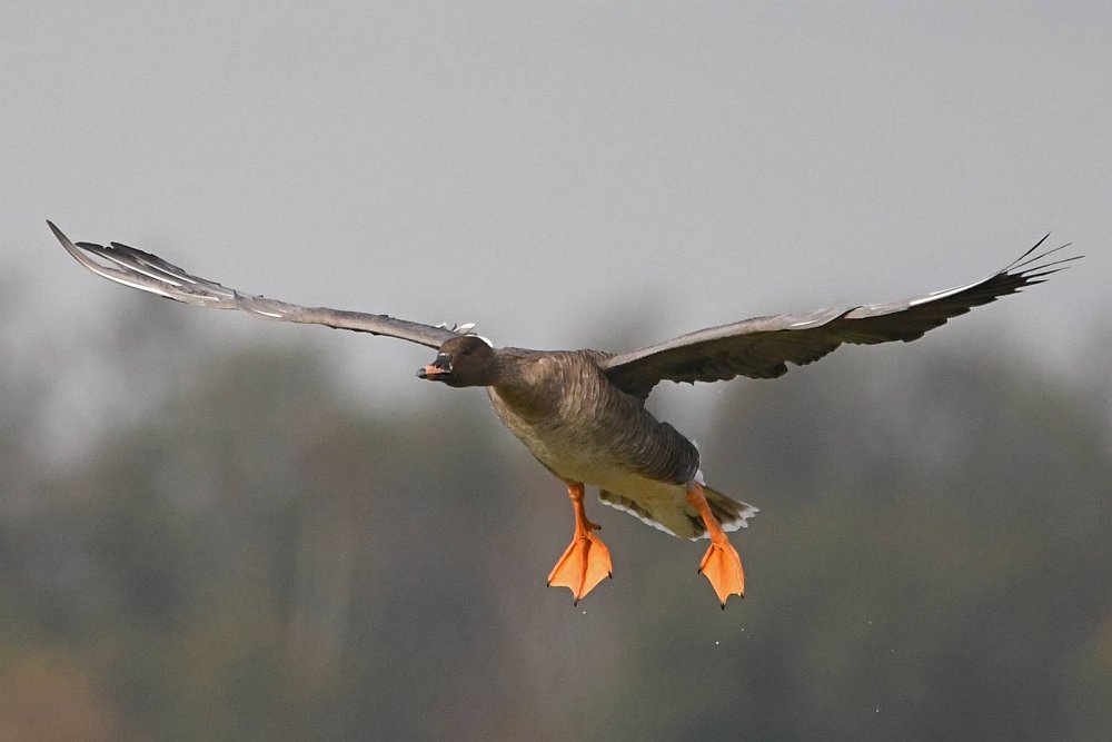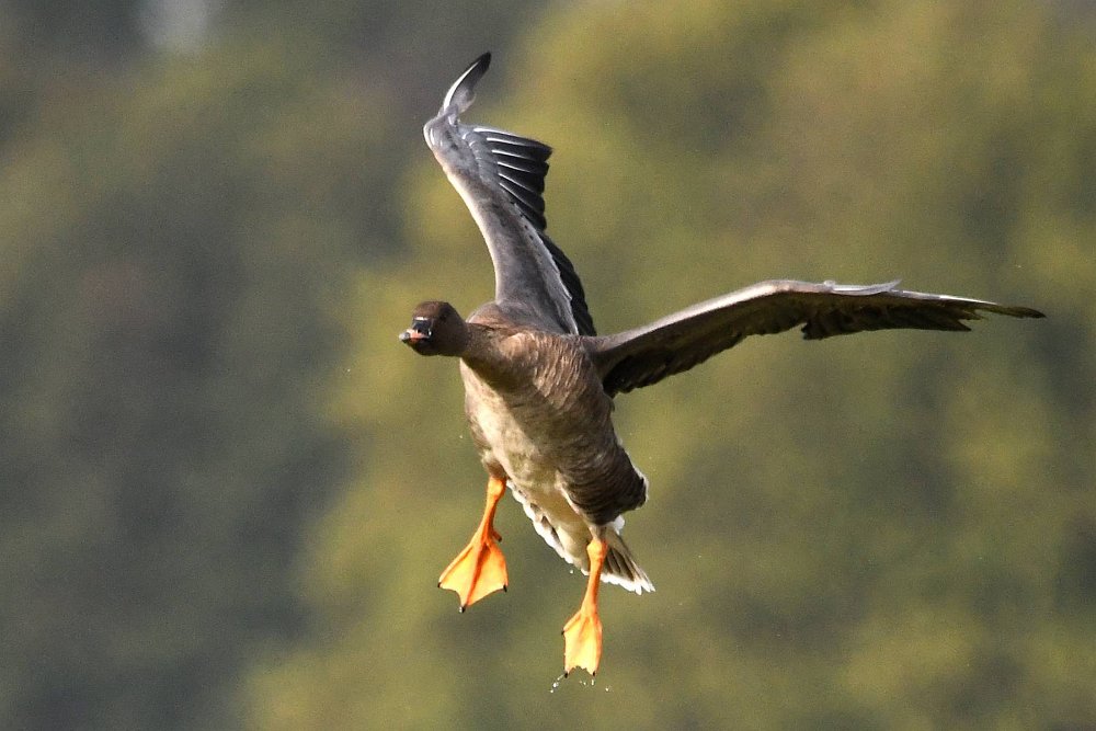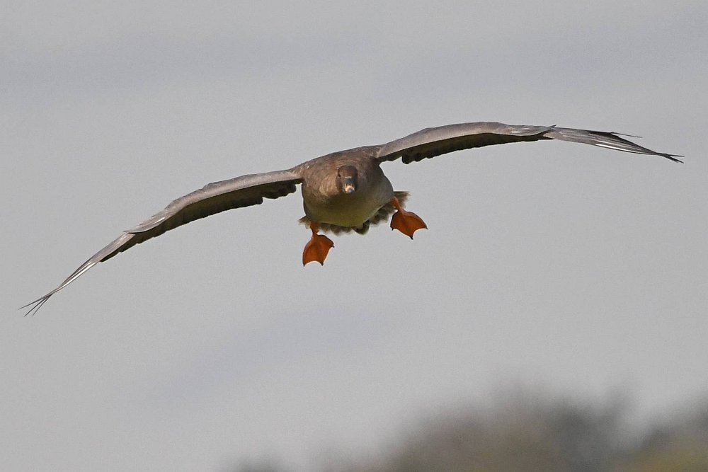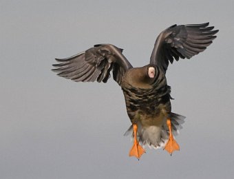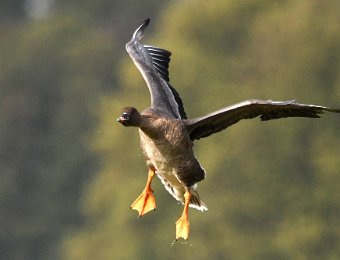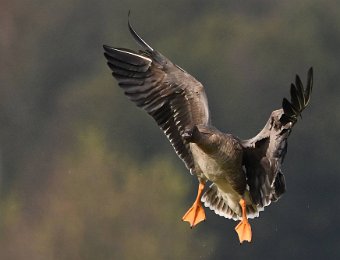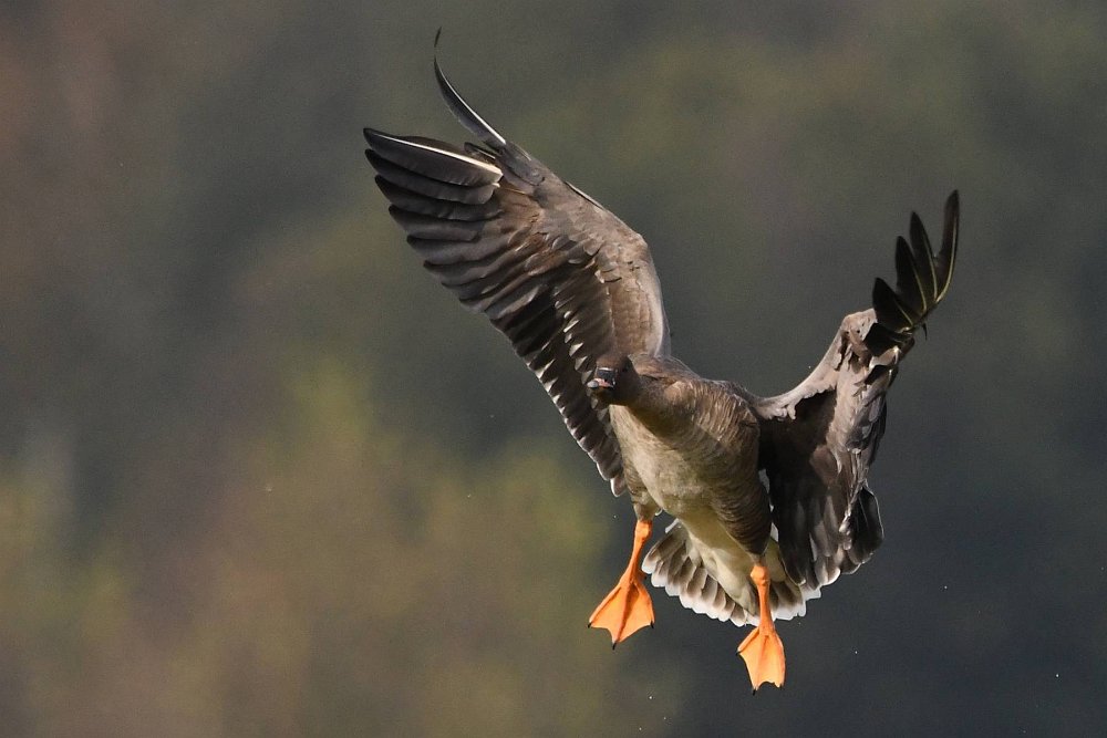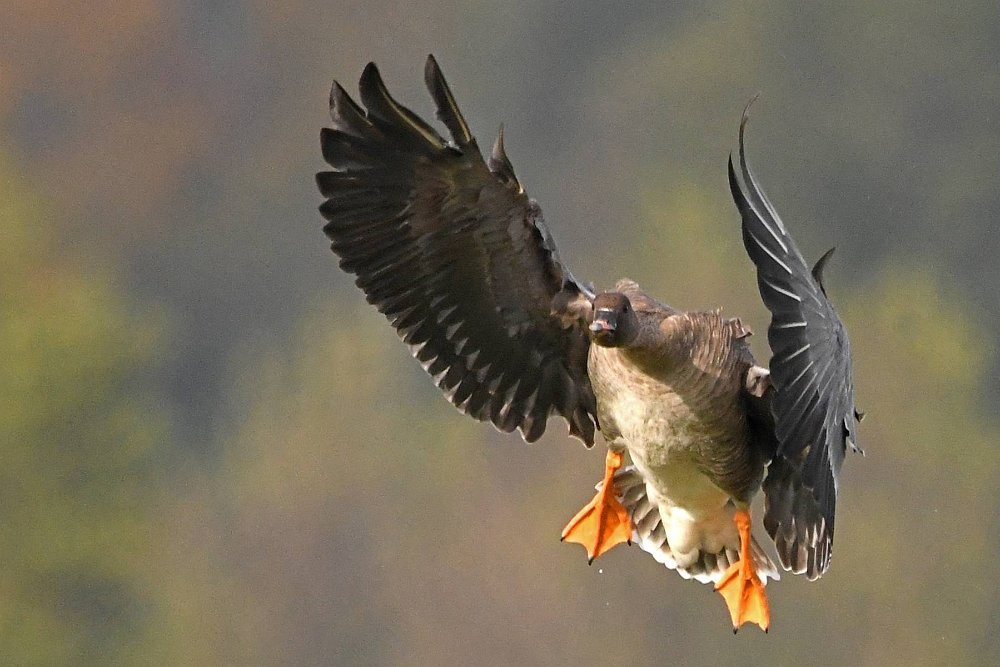 Ich hatte Glück. Die Sonne stand gut und die Gaense flogen direkt auf die Kamera zu. Der Landeanflug der Voegel sieht sehr lustig aus.