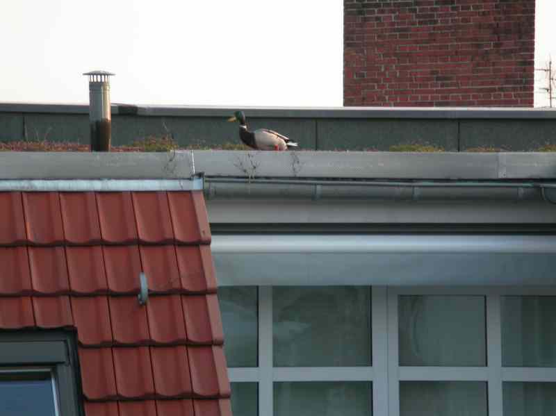 Probleme mit Enten gibt es besonders zur Brutzeit von März bis Anfang Juni. Unter natürlichen Bedingungen können die Enten leicht vom Brutplatz zu ihren Nahrungsgebieten gelangen. In Großstädten allerdings werden durch Menschen geprägte Bedingungen, wie stark befahrene Straßen und Grundstücksumfriedungen, für frisch geschlüpfte Entenküken zu unüberwindbaren Hindernissen. Wegen ihrer naturnahen Strukturierung werden besonders gerne begrünte Dachgärten, Terrassen und bepflanzte Balkone von den Enten als potentielle Brutplätze gewählt. Dass diese Nistplatzwahl zahlreiche Probleme bringt, liegt auf der Hand. Die Jungvögel (Entenküken sind Nestflüchter!) können die Dachbegrenzungen nicht überwinden, Spalten und Öffnungen werden zu Todesfallen, oder die Tiere stürzen von den Balkonen. Auch der Mangel an natürlicher Nahrung (mit den notwendigen Nährstoffen, wie z. B. Algen-Eiweiß) in Brutplatznähe schadet den heranwachsenden Jungenten. Quelle: http://www.stiftung-naturschutz.de/wild/content/animals/wasservoegel.htm HilfsmaßnahmenDamit es bei Enten gar nicht erst zum Problem einer Brut auf Balkon oder Terrasse kommt, gilt: Vorbeugen ist besser als heilen! Wenn ein Entenpärchen versucht, sich an diesen Plätzen ein Nest zu bauen, hilft nur Hartnäckigkeit. Die Tiere möglichst oft stören, sie vertreiben und ihnen den Standort so unangenehm wie möglich machen. Sie finden an einem anderen Ort bestimmt einen besseren Brutplatz. Auch ein Umstellen des Inventars auf Balkon oder Terrasse in der Brutzeit (März bis Anfang Juni), sodass die Vögel wenig Deckungsmöglichkeit haben) kann Enten von vornherein den falsch gewählten Nistplatz vermiesen". Gelingt das nicht, umgehend Kontakt zu den unten genannten Helfern aufnehmen! Wenn ein verletztes Tier gefunden wird, so schnell wie möglich die aufgeführten Helfer benachrichtigen. Bis Hilfe eintrifft, den Vogel an einer geschützten Stelle lassen. Das verletzte Tier entweder in einen belüfteten Karton setzen und zu den benachrichtigten Helfern bringen oder den Vogel abholen lassen. |