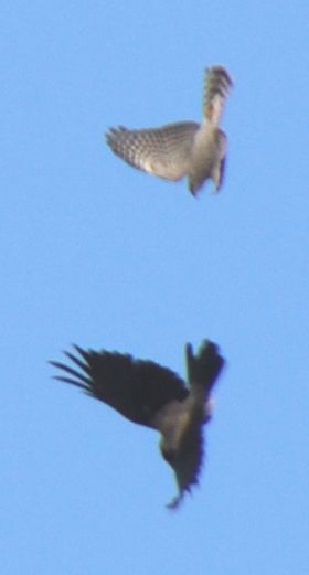 einen minutenlangen Luftkampf geliefert hat. Mal griff die Krähe